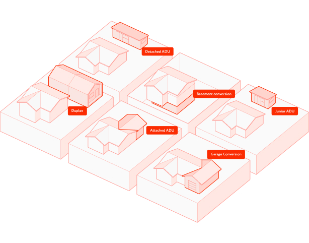 - JADU (junior ADU) – add up to 500 sf of flexible living space, seamlessly connected to the main house.